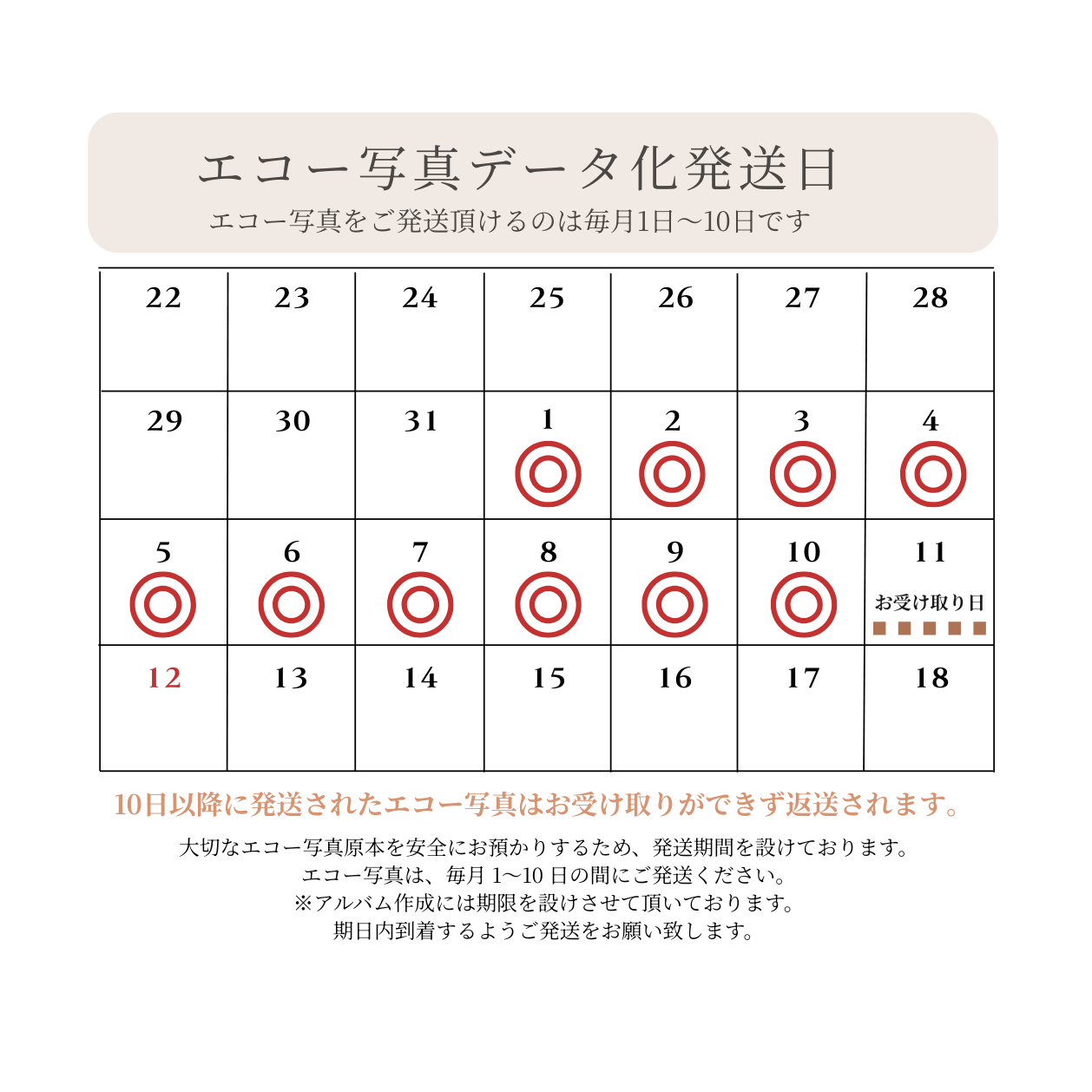エコー写真をお送りいただくキッドがご自宅へ到着いたします。